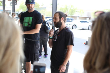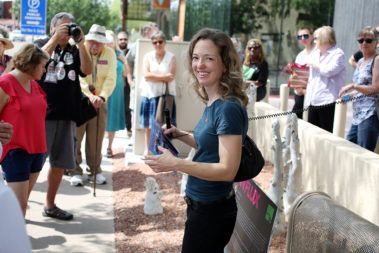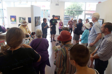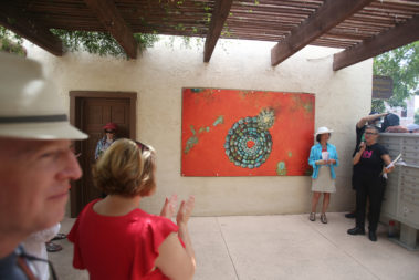This year’s tour started and ended at Miller Plaza in Scottsdale, where guests can left their cars at the Fry’s parking lot for the tour duration. While people registered and had coffee provided by Merci Cafe, from 9am – 10am, Scottsdale Public Art had the official opening reception for the Miller Plaza IN FLUX project by Elijah Bourque.