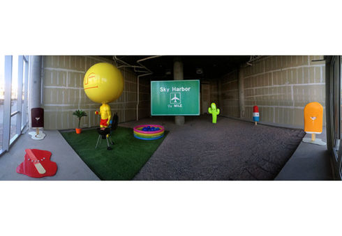 Nathaniel Lewis has always had a peculiar outlook on life. As an artist he enjoys making work that is provocative, but accessible.  He goes out of his way to give the viewer something layered, humorous and something they can identify with.  Big Head Day is a playful portrait of the city of Phoenix from the point of view of the Sun. The Phoenix Metro area is a man-made island which exists as a sheer force of will. As an ambivalent, omnipresent feature, the Sun resides over a landscape of almost nature: ephemeral things, permanent things, natural things and artificial things, all working together to make up a city. Big Head Day is a celebration of the strangeness of living in the desert.