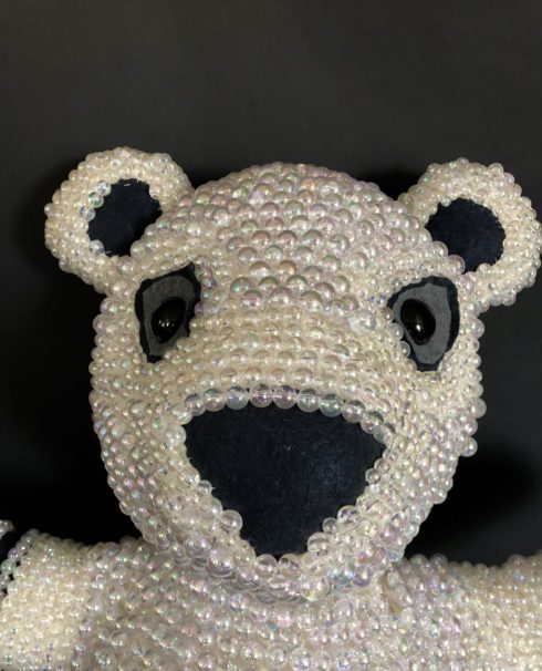 With the use of technology having a strong presence in society today, I feel creating art using traditional mediums and techniques are more important than ever. My sculptures incorporate a mix of fiber arts, symbolism, texture, and research to engage people in magical ways. Every stitch, bead, and handmade shape is a visual story filled with history and the human touch.