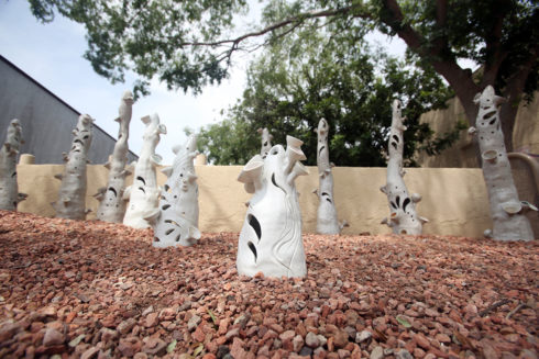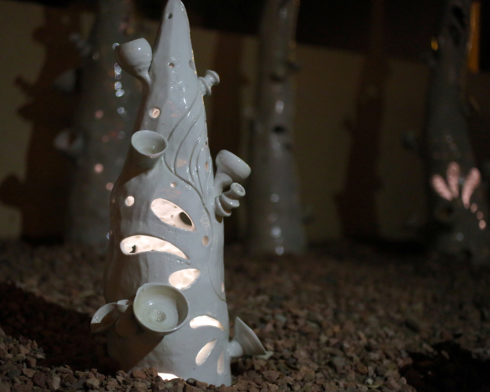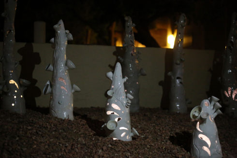 Arizona has quite the varied geological past. Historically, it was a shallow sea in the Precambrian era and was home to a variety of coral and marine life. Artist Danielle Wood often looks at the cacti and succulents of our current landscape and visualizes the past forms of corals and its inhabitants. Within the past and the present of the Valley terrain lies a solitary yet vastly inhabited space with immense potential for the imagination. It is a diverse natural environment to be respected that has been home to many living beings both animal and human, microscopic and visible, and to a lengthy and varied history. In Desert Playa, the artist explores the beauty of the juxtaposition between the desert’s oceanic past and its present existence as a rugged desert topography.
