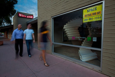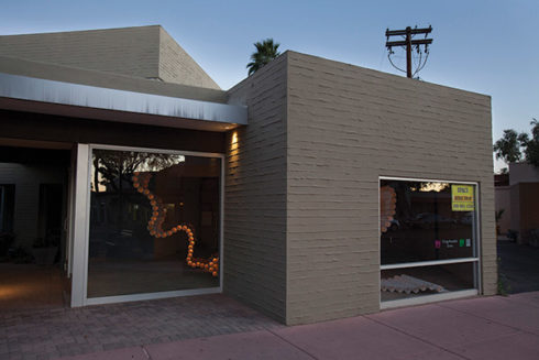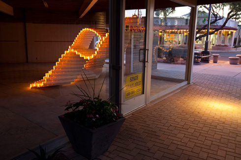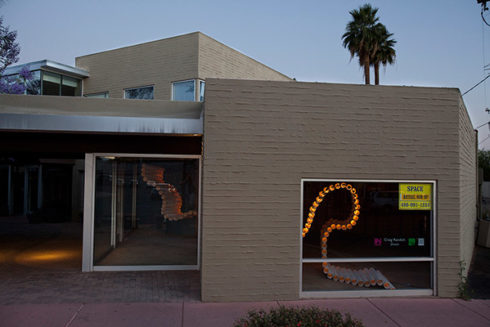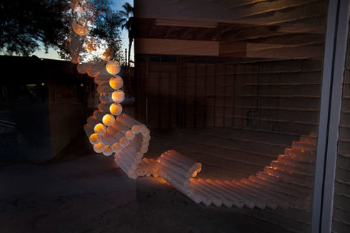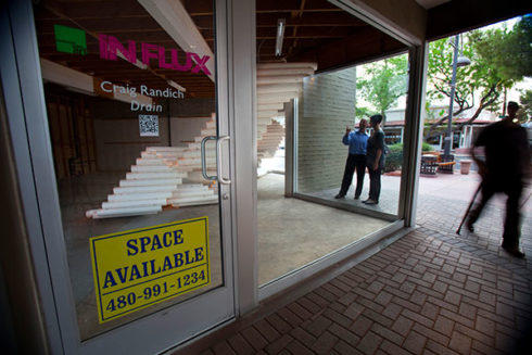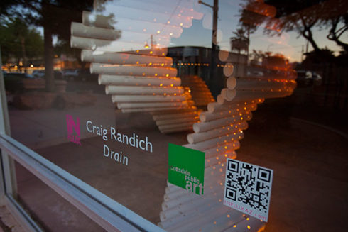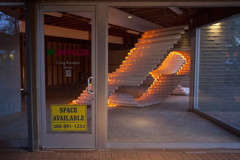 Phoenix artist Craig Randich continues to investigate his ability to play with scale and material in an effort to change the universal perception of sculpture. From a distance, Drain appears to be a graceful white line curving through the space, but upon closer inspection the viewer finds that it is made entirely out of everyday building materials exuding a surprising sense of movement, strength, and grace.