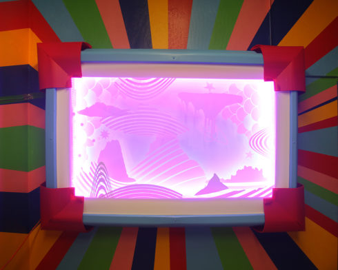 Funkhouser‘s recent body of work combines LED lights and unusual materials to create playful and dreamlike environments.