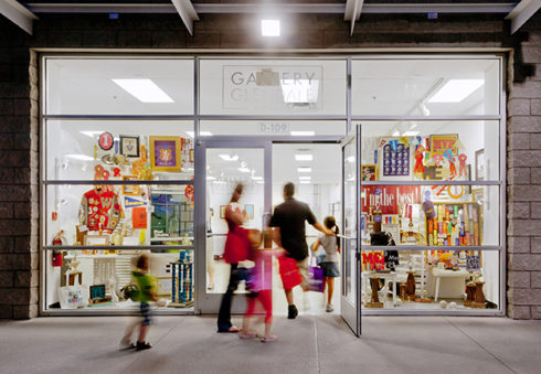 Inpsired by the adjacency of the site to a major sports complex, Phoenix-based artist Christopher Jagmin turns the trditional trophy case on its ear. Although the storefront appears to be  what one would expect from a trophy case, upon closer inspection, the viewer finds phrases like “Best friend” and “Most reliable”. Who received these unique awards and why?